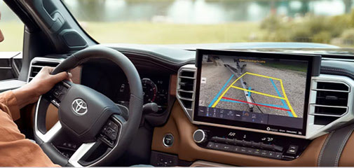 Tundra integrates large-screen infotainment, camera-based towing views, and the latest Toyota Safety Sense driver assists to support busy days in Fort Worth and weekend hauls through Weatherford backroads.
