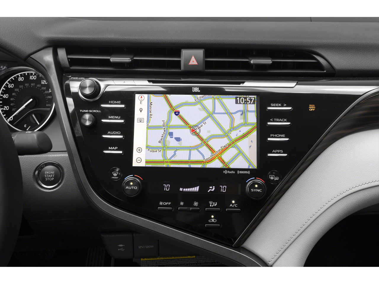 - Radio: Entune 3.0 Audio Plus w/App Suite -inc: 6 speakers, 8" touchscreen, AM/FM/HD Radio, CD player, auxiliary port, USB media port, 2 USB charge ports, advanced voice recognition, hands-free phone capability and music streaming via Bluetooth® wireless technology, Scout GPS Link compatible w/up to 3-year trial, Siri Eyes Free, Apple CarPlay compatible, SiriusXM satellite radio w/3-month All Access trial and Entune 3.0 Toyota Connected Services including Safety Connect w/3-year trial, Service Connect w/3-year trial, Remote Connect w/6-month trial, Wi-Fi Connect Powered by Verizon w/up to 2GB within 6-month trial and Qi-compatible wireless smartphone charging