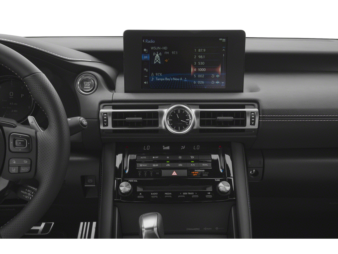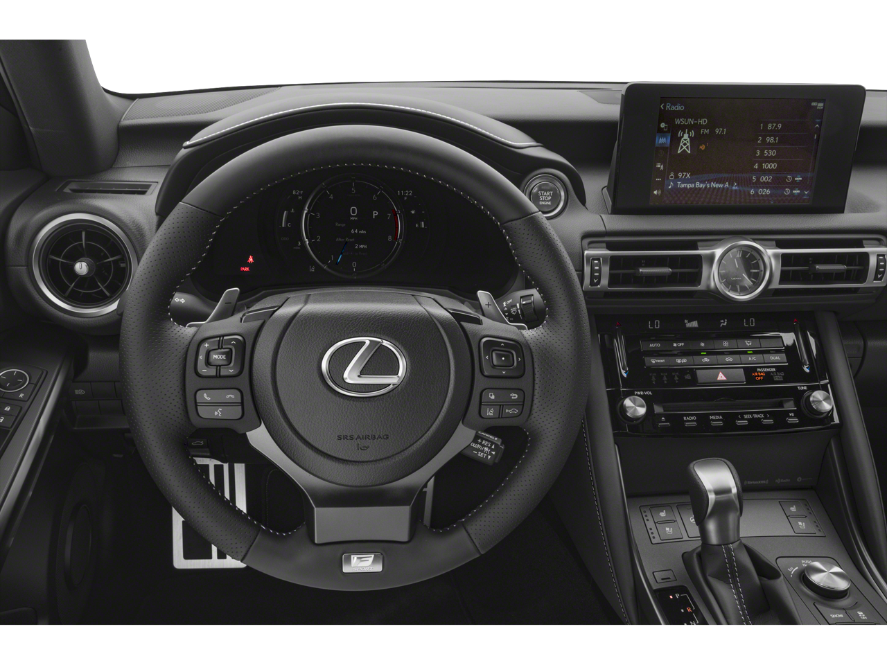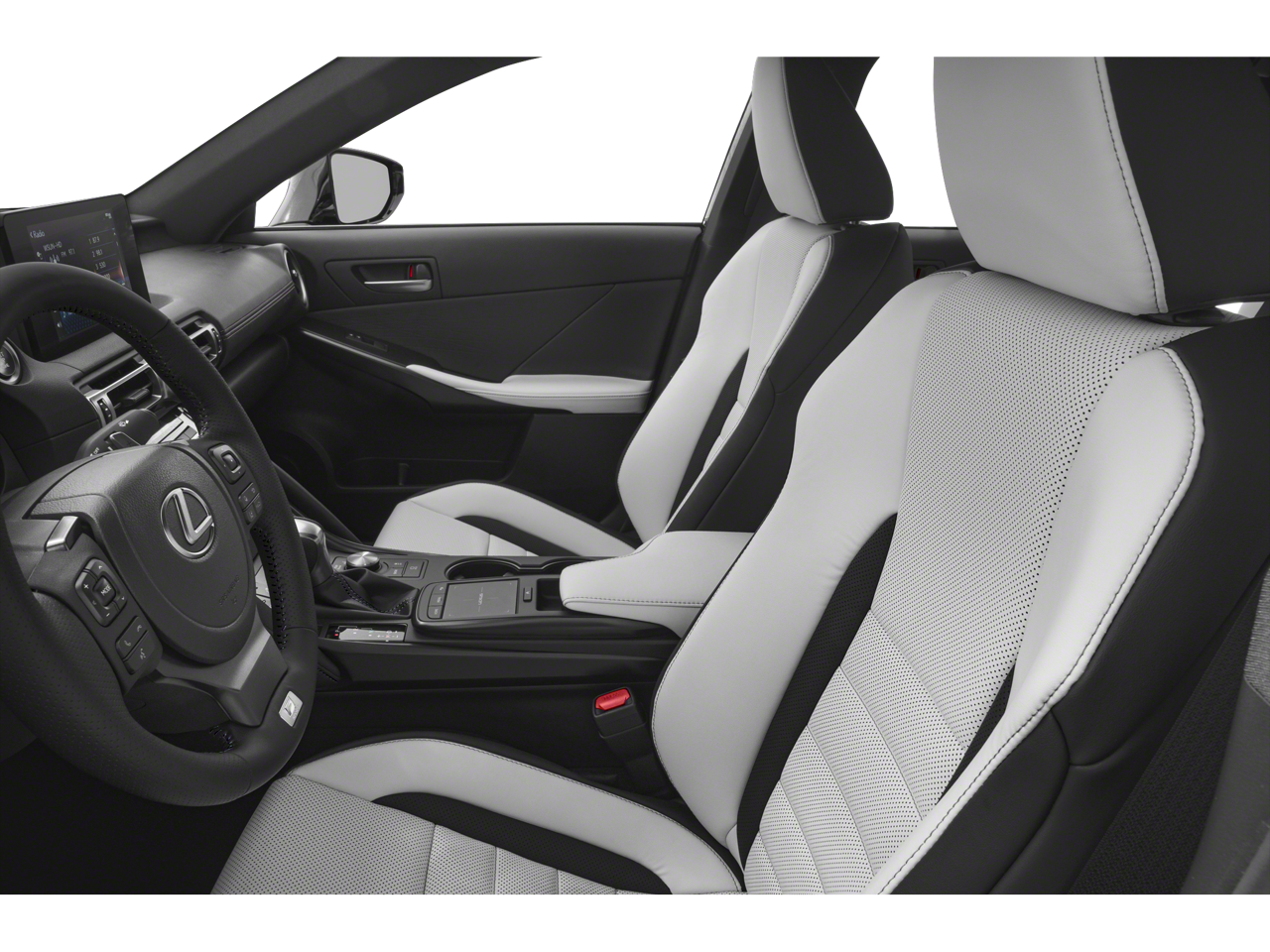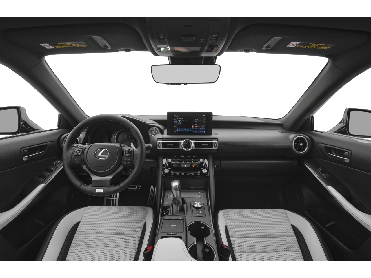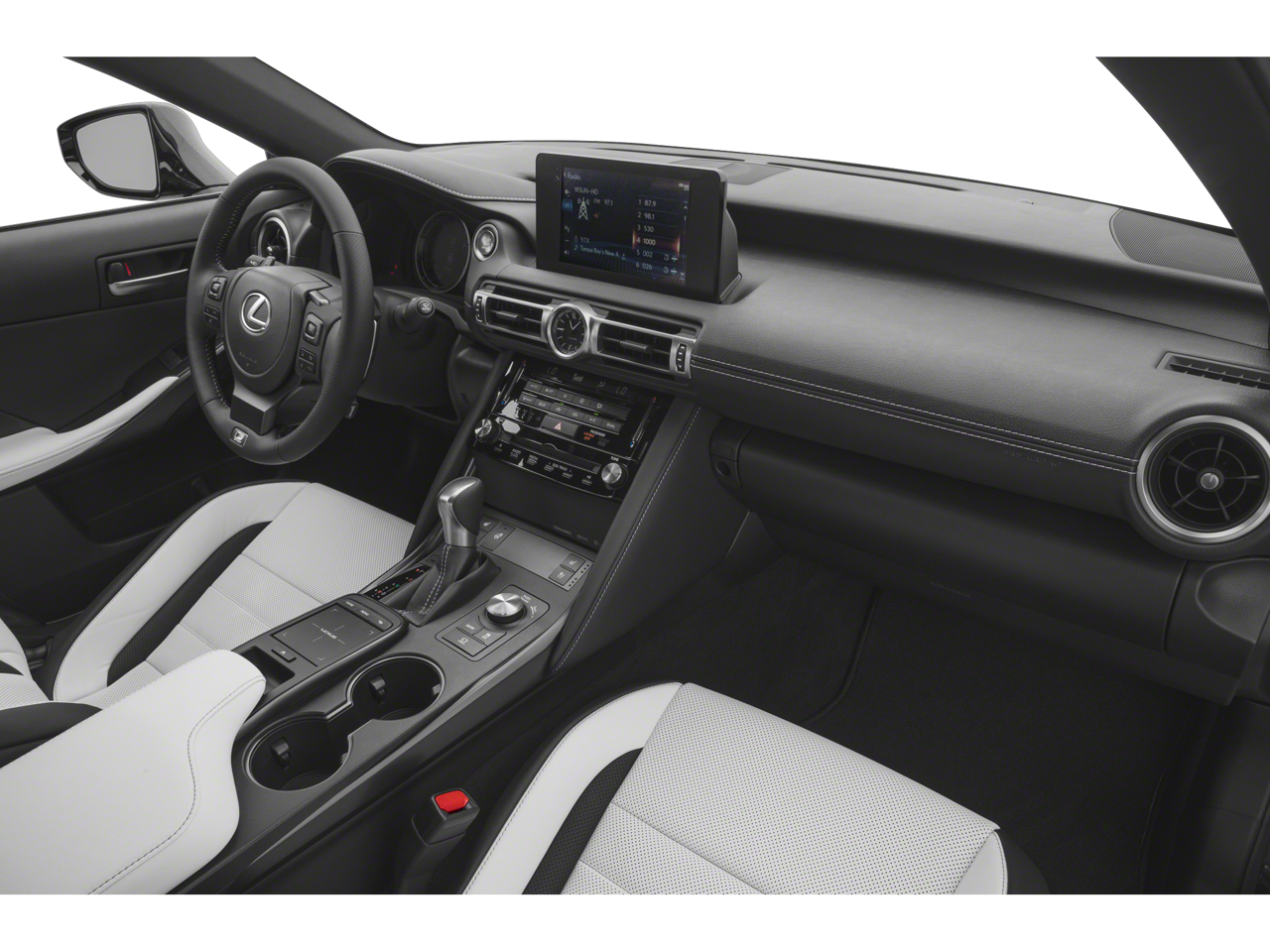 This vehicle comes equipped with: Accessory Package 2 (Cargo Net, Carpet Trunk Mat, Key Gloves, Rear Bumper Applique, and Wheel Bolt Locks), Navigation Package, White W/Black Premium Synthetic, 10 Speakers, 4-Wheel Disc Brakes, ABS brakes, Air Conditioning, Alloy wheels, AM/FM radio: SiriusXM, AM/FM/CD Player, Apple CarPlay/Android Auto, Auto High-beam Headlights, Auto-dimming door mirrors, Auto-dimming Rear-View mirror, Automatic temperature control, Brake assist, Bumpers: body-color, CD player, Compass, Delay-off headlights, Driver door bin, Driver vanity mirror, Dual front impact airbags, Dual front side impact airbags, Electronic Stability Control, Emergency communication system: Lexus Enform w/Safety Connect, Exterior Parking Camera Rear, F SPORT NuLuxe Seat Trim, Four wheel independent suspension, Front anti-roll bar, Front Bucket Seats, Front Center Armrest, Front dual zone A/C, Front fog lights, Front reading lights, Fully automatic headlights, Garage door transmitter: HomeLink, Heated & Ventilated F Sport Sport Seats, Heated door mirrors, Heated front seats, Heated steering wheel, Illuminated entry, Intuitive Park Assist w/Auto Braking, Knee airbag, Leather Shift Knob, Low tire pressure warning, Moonroof, Occupant sensing airbag, Outside temperature display, Overhead airbag, Overhead console, Panic alarm, Passenger door bin, Passenger vanity mirror, Power door mirrors, Power driver seat, Power passenger seat, Power steering, Power windows, Premium Paint (PJ), Radio data system, Rain sensing wipers, Rear anti-roll bar, Rear reading lights, Rear seat center armrest, Rear side impact airbag, Rear window defroster, Remote keyless entry, Security system, Speed control, Speed-sensing steering, Speed-Sensitive Wipers, Split folding rear seat, Spoiler, Sport steering wheel, Steering wheel mounted audio controls, Tachometer, Telescoping steering wheel, Tilt steering wheel, Traction control, Trip computer, Turn signal indicator mirrors, Variably intermittent wipers, Ventilated front seats, and Wheels: 19 x 8.5J Front & 19 x 9.5J Rear.