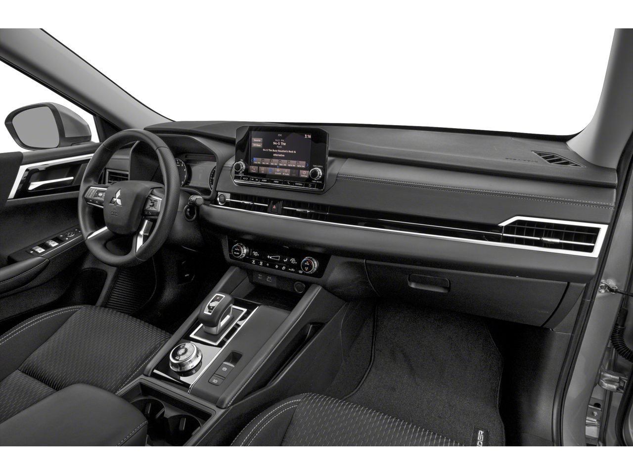 This vehicle comes equipped with : 4WD, 3rd row seats: split-bench, 4-Wheel Disc Brakes, ABS brakes, Air Conditioning, Alloy wheels, AM/FM radio: SiriusXM, Android Auto & Apple CarPlay, Auto High-beam Headlights, Automatic temperature control, Axle Ratio: 5.694, Brake assist, Bumpers: body-color, Driver door bin, Driver vanity mirror, Dual front impact airbags, Dual front side impact airbags, Electronic Stability Control, Emergency communication system: Mitsubishi Connect w/ 24-month trial, Four wheel independent suspension, Front anti-roll bar, Front Bucket Seats, Front Center Armrest w/Storage, Front dual zone A/C, Front fog lights, Front reading lights, Fully automatic headlights, Headlight cleaning, Heated door mirrors, Heated Front Bucket Seats, Heated front seats, Illuminated entry, Knee airbag, Leather Shift Knob, Leather steering wheel, Low tire pressure warning, Occupant sensing airbag, Outside temperature display, Overhead airbag, Overhead console, Panic alarm, Passenger door bin, Passenger vanity mirror, Power door mirrors, Power driver seat, Power Liftgate, Power steering, Power windows, Radio data system, Rain sensing wipers, Rear anti-roll bar, Rear seat center armrest, Rear side impact airbag, Rear window defroster, Rear window wiper, Reclining 3rd row seat, Remote keyless entry, Security system, Speed control, Speed-Sensitive Wipers, Split folding rear seat, Spoiler, Steering wheel mounted audio controls, Synthetic Leather Seat Trim, Tachometer, Telescoping steering wheel, Tilt steering wheel, Traction control, Trip computer, Turn signal indicator mirrors, and Variably intermittent wipers.