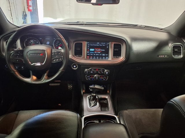 This vehicle comes equipped with: Plus Group (Auto Adjust In Reverse Exterior Mirrors, Auto-Dimming Exterior Driver Mirror, Black-Edged Premium Floormats, Blind Spot & Cross Path Detection, Blind Spot Memory/Power/Heat Mirror, Driver & Passenger Lower LED Lamps, Exterior Mirrors Courtesy Lamps, Exterior Mirrors w/Heating Element, Front Overhead LED Lighting, Heated Front Seats, Power 2-Way Driver Lumbar Adjust, Power 2-Way Passenger Lumbar Adjust, Power Front Driver/Passenger Seats, Power Tilt/Telescope Steering Column, Premium-Stitched Dash Panel, Radio/Driver Seat/Mirrors Memory, Rear Armrest w/Cupholder Seat, Scat Pack Logo Nappa/Alcantara Seat, and Ventilated Front Seats), Quick Order Package 21W Scat Pack, Technology Group (Adaptive Cruise Control w/Stop, Advanced Brake Assist, Auto High Beam Headlamp Control, Full Speed FWD Collision Warn Plus, Lane Departure Warning Plus, and Rain Sensitive Windshield Wipers), Black Artificial Leather, 1-Yr SiriusXM Guardian Trial, 2-Piece Shark Fin Antenna, 4-Wheel Disc Brakes, 4G LTE Wi-Fi Hot Spot, 6 Speakers, 8.4 Touchscreen Display, ABS brakes, Air Conditioning, Alloy wheels, AM/FM radio: SiriusXM, Anti-whiplash front head restraints, Apple CarPlay, Apple CarPlay/Android Auto, Auto-dimming Rear-View mirror, Automatic temperature control, Brake assist, Bumpers: body-color, Cloth Performance Seats w/Heat, Compass, Delay-off headlights, Driver door bin, Driver vanity mirror, Dual front impact airbags, Dual front side impact airbags, Electronic Stability Control, Emergency communication system: SiriusXM Guardian, For Details, Visit DriveUconnect.com, Four wheel independent suspension, Front anti-roll bar, Front Bucket Seats, Front Center Armrest, Front dual zone A/C, Front fog lights, Front License Plate Bracket, Front reading lights, Fully automatic headlights, Garage door transmitter: HomeLink, Google Android Auto, GPS Antenna Input, HD Radio, Heated door mirrors, Heated front seats, Heated steering wheel, Illuminated entry, Integrated Center Stack Radio, Integrated Voice Command w/Bluetooth®, Knee airbag, Leather Shift Knob, Low tire pressure warning, Media Hub (2 USB, AUX), Occupant sensing airbag, Outside temperature display, Overhead airbag, Overhead console, Panic alarm, ParkView Rear Back-Up Camera, Passenger door bin, Passenger vanity mirror, Power door mirrors, Power driver seat, Power steering, Power windows, Radio: Uconnect 4C w/8.4 Display, Rear anti-roll bar, Rear reading lights, Rear seat center armrest, Rear window defroster, Remote keyless entry, Security system, Speed control, Speed-Sensitive Wipers, Split folding rear seat, Spoiler, Sport steering wheel, Steering wheel mounted audio controls, Tachometer, Telescoping steering wheel, Tilt steering wheel, Traction control, Trip computer, USB Host Flip, Variably intermittent wipers, and Wheels: 20 x 9 Lo Gloss Granite CrystaL.