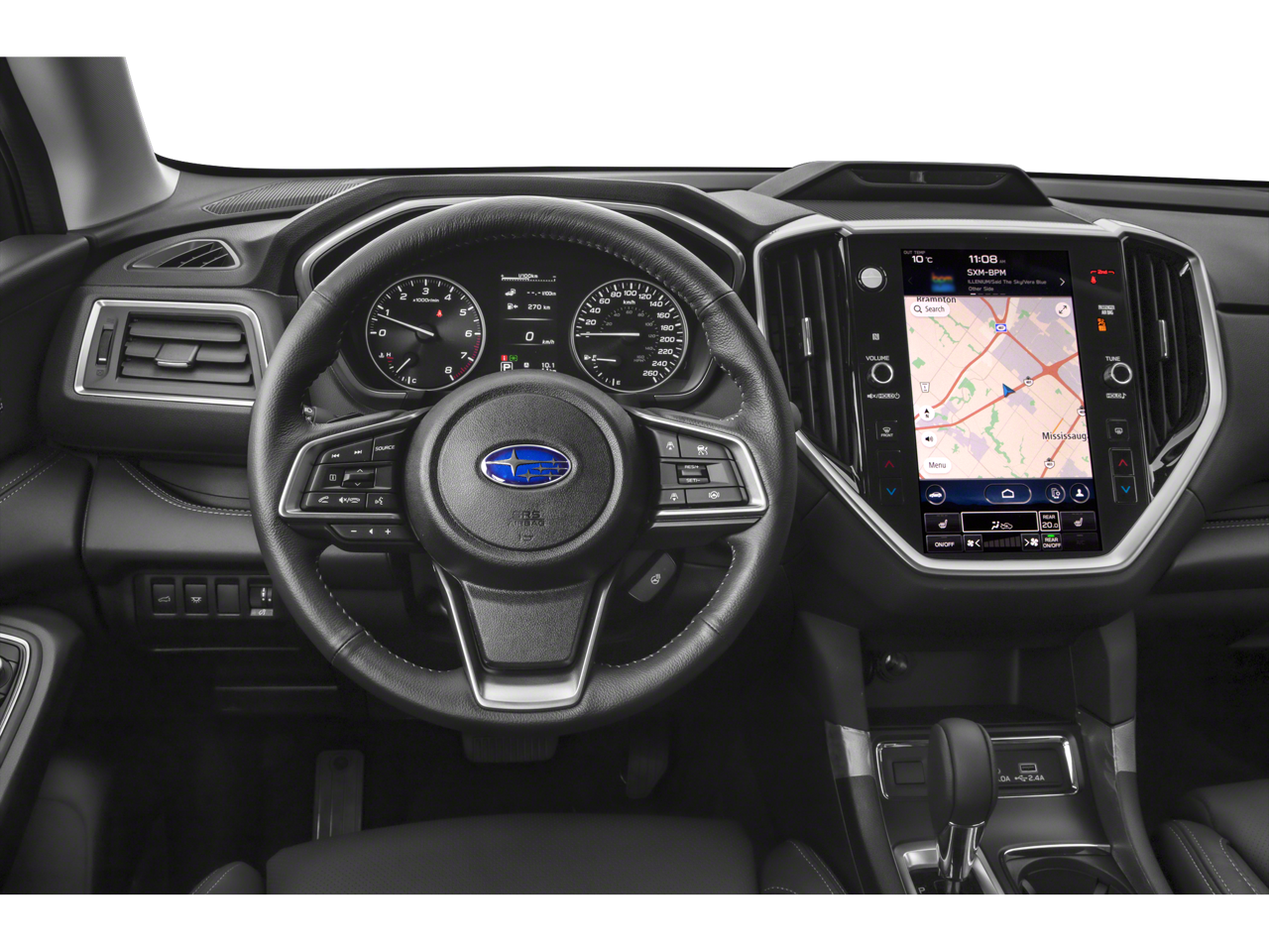 This vehicle comes equipped with: Standard Model, 3rd row seats: bench, 3rd Row Sunshade, 4-Wheel Disc Brakes, 6 Speakers, ABS brakes, Air Conditioning, All-Weather Floor Liners, Alloy wheels, AM/FM radio: SiriusXM, Auto High-beam Headlights, Auto-dimming Rear-View mirror, Automatic temperature control, Axle Ratio: 4.44, Brake assist, Bumpers: body-color, Cargo Tray, Compass, Delay-off headlights, Driver door bin, Driver vanity mirror, Dual front impact airbags, Dual front side impact airbags, Electronic Stability Control, Emergency communication system: STARLINK Safety and Security (Subscription Required), Exterior Parking Camera Rear, Four wheel independent suspension, Front anti-roll bar, Front Bucket Seats, Front Center Armrest, Front dual zone A/C, Front fog lights, Front reading lights, Fully automatic headlights, Garage door transmitter: HomeLink, Heated door mirrors, Heated Front Bucket Seats, Heated front seats, Heated rear seats, Heated steering wheel, HVAC memory, Illuminated entry, Knee airbag, Leather Shift Knob, Leather steering wheel, LED Upgrade, Low tire pressure warning, Memory seat, Occupant sensing airbag, Outside temperature display, Overhead airbag, Overhead console, Panic alarm, Passenger door bin, Passenger vanity mirror, Perforated Leather-Trimmed Upholstery, Power door mirrors, Power driver seat, Power Liftgate, Power passenger seat, Power steering, Power windows, Radio data system, Radio: Subaru STARLINK 11.6 Multimedia Plus System, Rear air conditioning, Rear anti-roll bar, Rear Bumper Cover, Rear reading lights, Rear seat center armrest, Rear window defroster, Rear window wiper, Reclining 3rd row seat, Remote keyless entry, Security system, Speed control, Speed-sensing steering, Split folding rear seat, Spoiler, STARLINK/Apple CarPlay/Android Auto, Steering wheel mounted audio controls, Tachometer, Telescoping steering wheel, Tilt steering wheel, Traction control, Trip computer, Turn signal indicator mirrors, Variably intermittent wipers, Wheels: 20 x 7.5 J Dk Gray Alloy w/Machine Finish, and Windshield Sunshade.