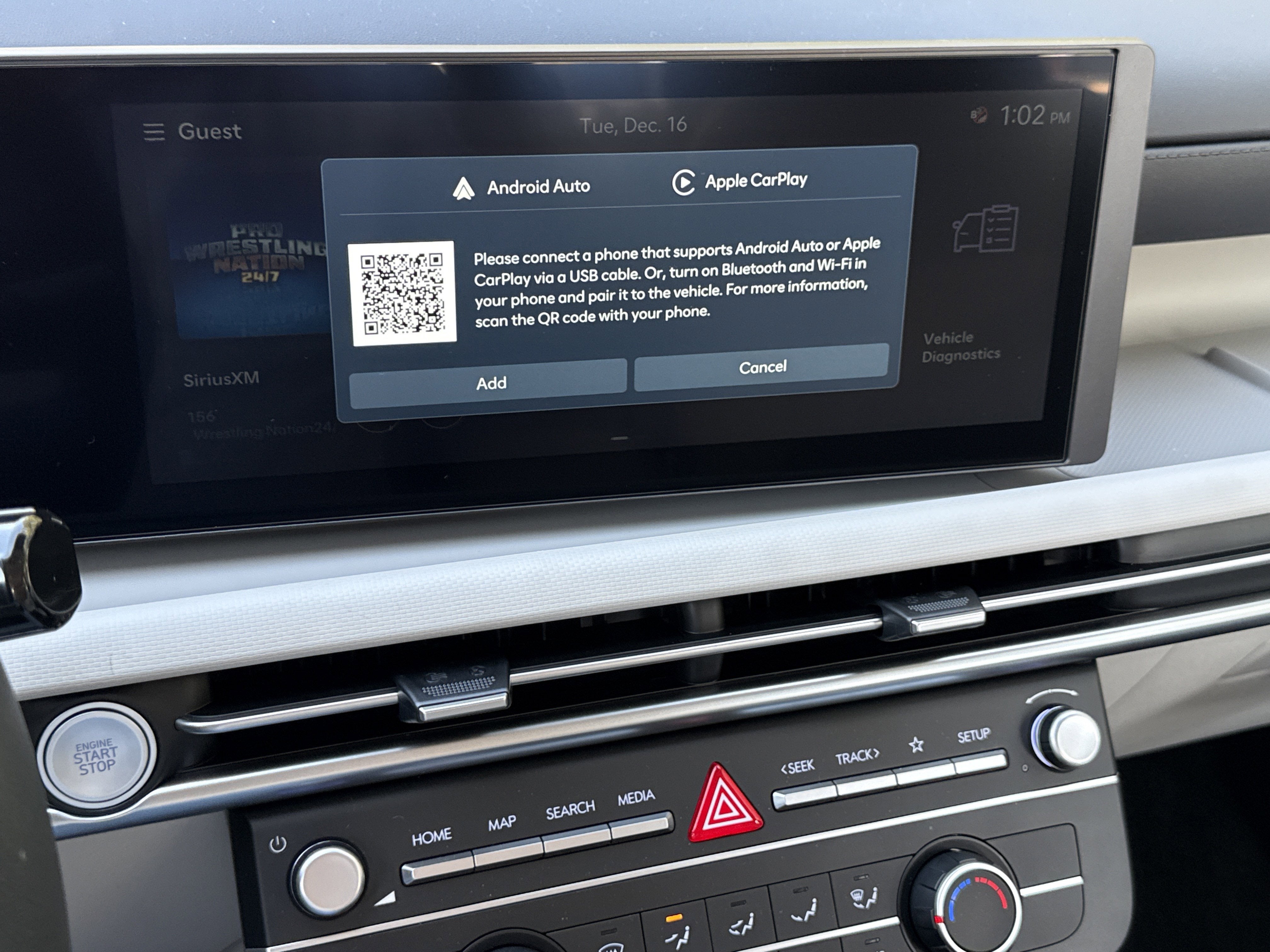 - Radio: AM/FM/HD Audio System -inc: 12.3" color touchscreen display, 6 speakers, SiriusXM satellite radio system (3-month trial subscription), wireless Apple CarPlay and Android Auto integration, controller OTA update capability, Blue Link connected car system and USB connectivity