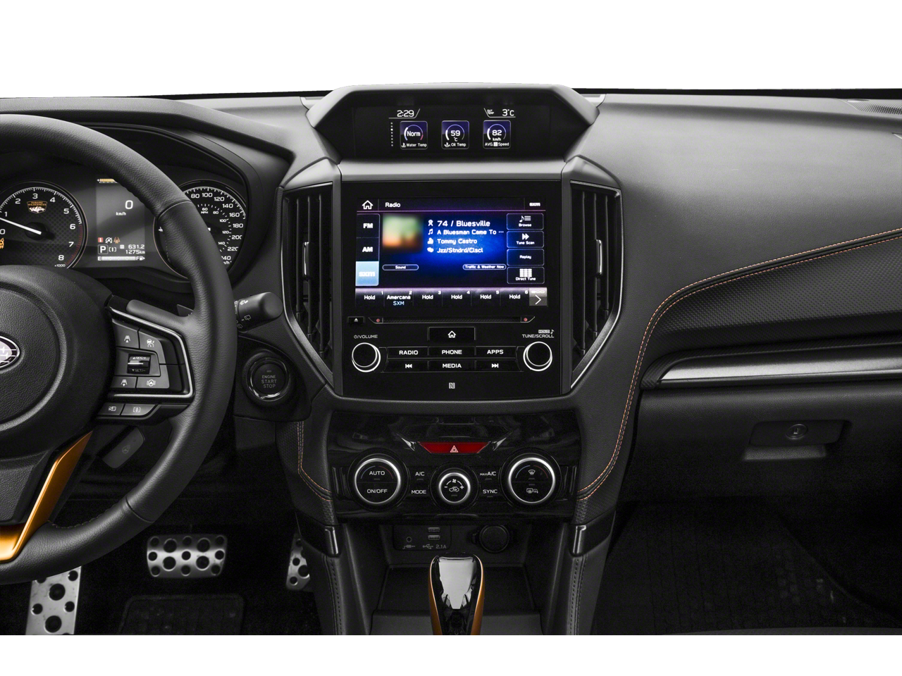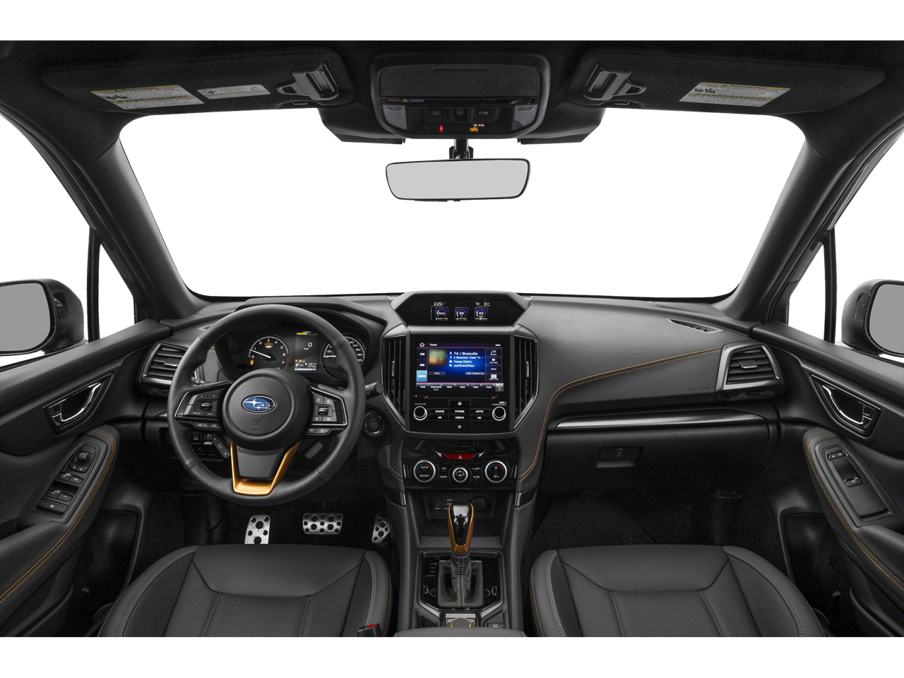 This vehicle comes equipped with: harman/kardon Audio & Power Rear Gate (Power Rear Gate and Radio: Subaru 8.0 Multimedia Navigation System), 4-Wheel Disc Brakes, 6 Speakers, ABS brakes, Air Conditioning, Alloy wheels, AM/FM radio: SiriusXM, Anti-whiplash front head restraints, Auto High-beam Headlights, Auto-Dimming Exterior Mirror w/Approach Light, Auto-Dimming Mirror w/Compass & HomeLink, Automatic temperature control, Brake assist, Bumpers: body-color, Driver door bin, Driver vanity mirror, Dual front impact airbags, Dual front side impact airbags, Electronic Stability Control, Emergency communication system: MySubaru Safety (3-year free trial), Exterior Parking Camera Rear, Four wheel independent suspension, Front anti-roll bar, Front Bucket Seats, Front Center Armrest, Front dual zone A/C, Front fog lights, Front reading lights, Fully automatic headlights, Heated door mirrors, Heated Front Bucket Seats, Heated front seats, Illuminated entry, Knee airbag, Leather Shift Knob, Leather steering wheel, Low tire pressure warning, Occupant sensing airbag, Outside temperature display, Overhead airbag, Overhead console, Panic alarm, Passenger door bin, Passenger vanity mirror, Power door mirrors, Power driver seat, Power moonroof: Panoramic, Power steering, Power windows, Radio data system, Radio: Subaru 8.0 Multimedia Plus System, Rear anti-roll bar, Rear Bumper Cover, Rear seat center armrest, Rear Seatback Protector - Wilderness, Rear window defroster, Rear window wiper, Remote keyless entry, Security system, Speed control, Speed-sensing steering, Split folding rear seat, Spoiler, Steering wheel mounted audio controls, Tachometer, Telescoping steering wheel, Textured StarTex Upholstery, Tilt steering wheel, Traction control, Trip computer, Turn signal indicator mirrors, Variably intermittent wipers, and Wheels: 17 x 7.0 J Matte Black Finish Alum-Alloy.