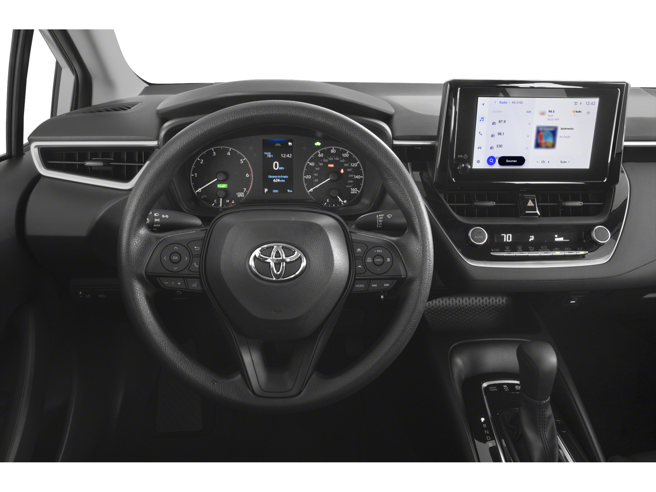 This vehicle comes equipped with: 1.8L DOHC 16V VVT, 4-Wheel Disc Brakes, 6 Speakers, ABS brakes, Air Conditioning, AM/FM radio: SiriusXM, Apple CarPlay/Android Auto, Auto High-beam Headlights, Automatic temperature control, Brake assist, Bumpers: body-color, Delay-off headlights, Driver door bin, Driver vanity mirror, Dual front impact airbags, Dual front side impact airbags, Electronic Stability Control, Emergency communication system: Safety Connect (up to 10-year trial subscription), Exterior Parking Camera Rear, Four wheel independent suspension, Front anti-roll bar, Front Bucket Seats, Front Center Armrest, Front reading lights, Fully automatic headlights, Illuminated entry, Knee airbag, Low tire pressure warning, Occupant sensing airbag, Outside temperature display, Overhead airbag, Panic alarm, Passenger door bin, Passenger vanity mirror, Power door mirrors, Power steering, Power windows, Premium Fabric Seat Trim, Radio data system, Radio: 8 Toyota Audio Multimedia, Rear anti-roll bar, Rear seat center armrest, Rear side impact airbag, Rear window defroster, Remote keyless entry, Speed control, Split folding rear seat, Steering wheel mounted audio controls, Tachometer, Telescoping steering wheel, Tilt steering wheel, Traction control, Trip computer, and Wheels: 16 Wide Vent Steel.