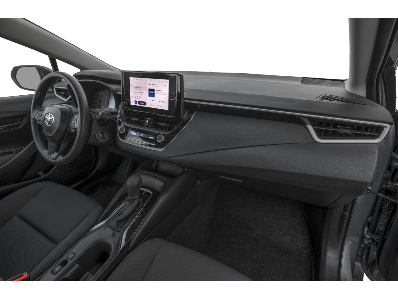 This vehicle comes equipped with: 4-Wheel Disc Brakes, 6 Speakers, ABS brakes, Air Conditioning, AM/FM radio: SiriusXM, Apple CarPlay/Android Auto, Auto High-beam Headlights, Automatic temperature control, Brake assist, Bumpers: body-color, Delay-off headlights, Driver door bin, Driver vanity mirror, Dual front impact airbags, Dual front side impact airbags, Electronic Stability Control, Emergency communication system: Safety Connect (up to 10-year trial subscription), Exterior Parking Camera Rear, Fabric Seat Trim, Front anti-roll bar, Front Bucket Seats, Front Center Armrest, Front reading lights, Front wheel independent suspension, Fully automatic headlights, Heated door mirrors, Illuminated entry, Knee airbag, Low tire pressure warning, Occupant sensing airbag, Outside temperature display, Overhead airbag, Panic alarm, Passenger door bin, Passenger vanity mirror, Power door mirrors, Power steering, Power windows, Radio data system, Radio: 8 Toyota Audio Multimedia, Rear anti-roll bar, Rear seat center armrest, Rear side impact airbag, Rear window defroster, Remote keyless entry, Speed control, Split folding rear seat, Steering wheel mounted audio controls, Tachometer, Telescoping steering wheel, Tilt steering wheel, Traction control, Trip computer, and Wheels: 16 Steel with Covers.